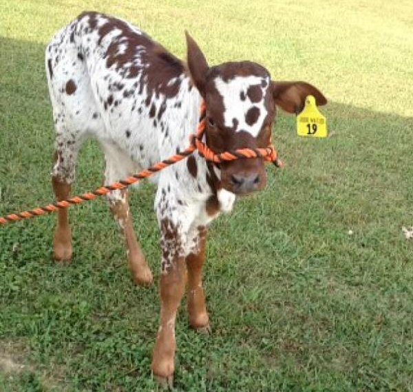 Red, with her 2-day old calf